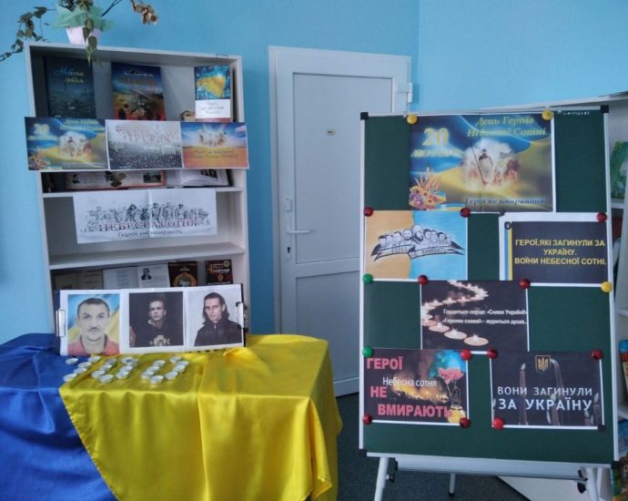 У музеях та бібліотеках навчальних закладів відбулась презентація тематичних виставок художньої літератури, фотовиставок, експозицій за темами «Герої не вмирають», «Вічна слава Героїв Небесної Сотні», «Події, що змінили Україну», «Герої не вмирають. Просто ідуть в небеса».