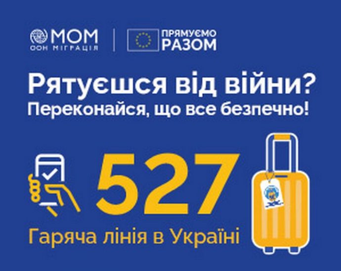 Кампанія має також на меті спонукати внутрішньо переміщених осіб активніше користуватися гарячою лінією з консультування мігрантів 527. На неї можна зателефонувати анонімно та безкоштовно з мобільного телефону в Україні. Гаряча лінія працює щодня з 8:00 до 20:00.