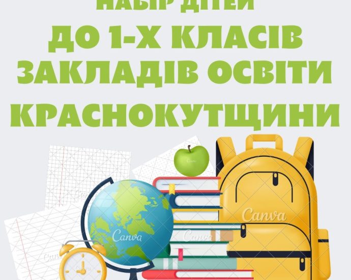З 1 травня 2023 року по 31 травня 2023 року в закладах загальної середньої освіти Краснокутської селищної ради Богодухівського району Харківської області розпочинається прийом заяв майбутніх першокласників 2023/2024 навчального року.