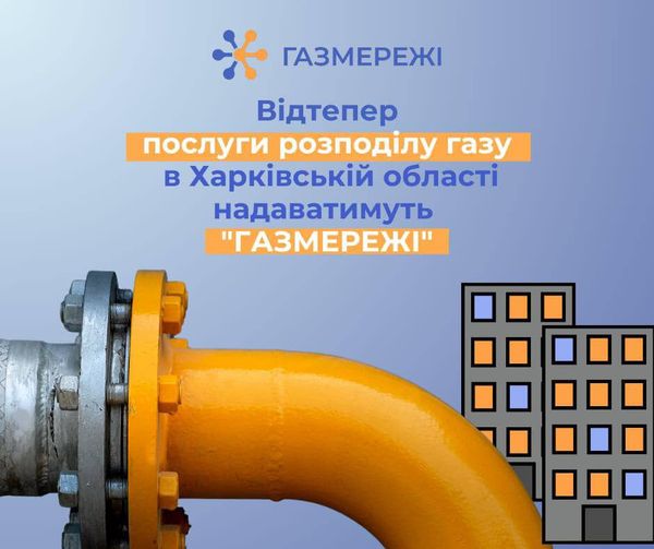 З 1 липня 2023 року послуги з забезпечення стабільної і безаварійної доставки газу споживачам та обслуговування газових мереж надаватимуться національним оператора ТОВ «Газорозподільні мережі України», в особі Харківської філії Газмереж.