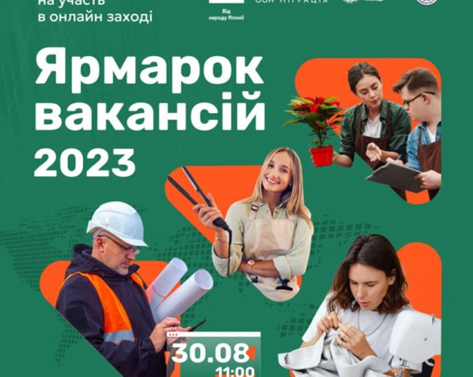 30 серпня 2023 року з 11.00 до 14.00 год. відбудеться онлайн захід «Ярмарок Вакансій 2023: Робота Є!» для молодих людей у віці 16-35 років. Організатори – ГО «Маріупольська Спілка Молоді». Захід проводять в рамках програми «Відбудова та розвиток 2023: працевлаштування та бізнес».
