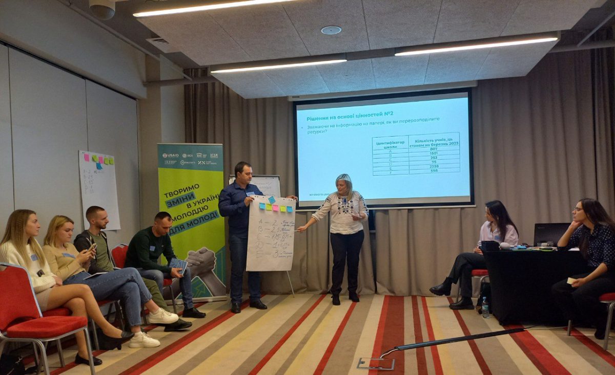 Під час третього дня тренінгу команди дізналися принципи дизайну дослідження потреб молоді в громаді, прописали стадії проєктування дослідження, грунтуючись на пріоритетах Національної молодіжної стратегії до 2030 року.
