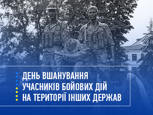 15 лютого в Україні відзначається День вшанування учасників бойових дій на території інших держав та річниця виведення радянських військ з Афганістану. Щороку наш народ віддає данину шани воїнам, котрі пройшли горнило війни в Афганістані та інших «гарячих» точках планети. Де б не довелося нашим воякам брати участь у миротворчих операціях – вони сумлінно виконували військову присягу й примножували авторитет України як держави-миротворця. Ми засвідчуємо свою глибоку шану і повагу вашій мужності та самовідданій праці. Ви, як ніхто інший, знаєте справжню ціну війни і миру. І, як ніхто інший, вмієте дорожити сьогоднішнім днем, усвідомлювати свою відповідальність за майбутнє, за долю прийдешніх поколінь. Дякуємо вам за мужність, за високу громадянську відповідальність. Бажаємо міцного здоров’я, впевненості у завтрашньому дні, оптимізму, успіхів, благополуччя вам та вашим родинам.
