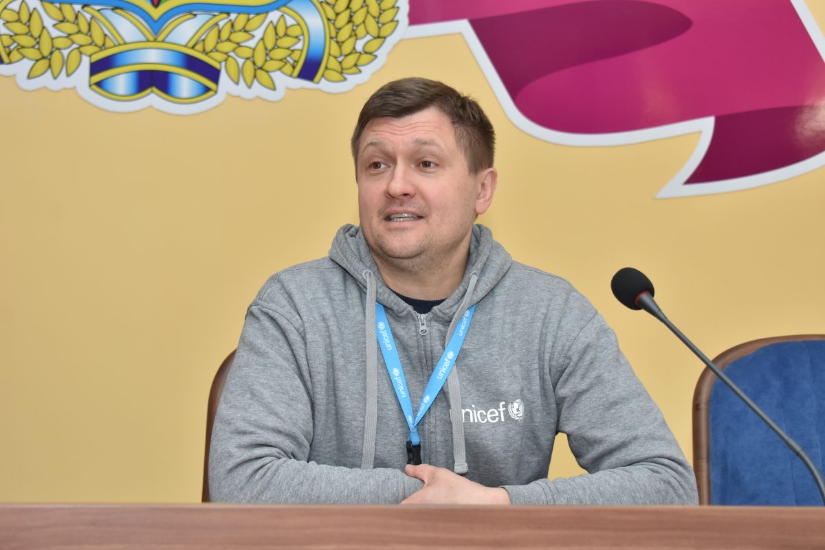Олексій Гущин – керівник проєктів із охорони здоров’я, Олена Устименко – керівниця проєктів з освіти, Сергій Куликов – фахівець із захисту дітей, Карл Інгрідс – керівник програм із захисту дітей, Яна Любимова – консультант із соціальних послуг детально розповіли присутнім про роботу Дитячого фонду ООН (ЮНІСЕФ) за конкретними напрямками.