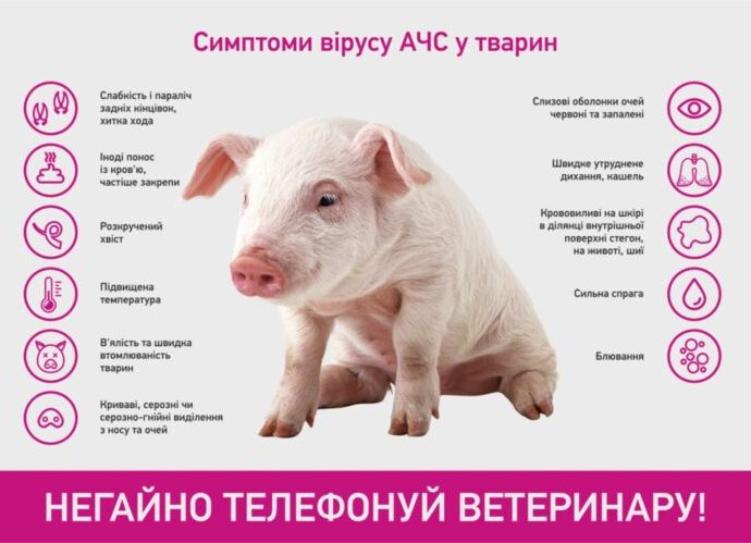 З метою запобігання занесення вірусу АЧС, рекомендуємо дотримуватись вимог Інструкції щодо профілактики та боротьби з африканською чумою свиней, затвердженої наказом Міністерства аграрної політики та продовольства України 07.03.2017 року № 111, зареєстрованої в Міністерстві юстиції України 29 березня 2017 р. № 432/30300.