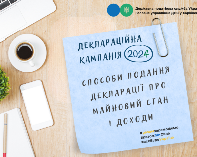 Головне управління ДПС у Харківській області повідомляє, що громадяни, які відповідно до Податкового кодексу України зобов’язані подати податкову декларацію про майновий стан і доходи за 2023 рік (далі – декларація), мають задекларувати свої минулорічні доходи до 1 травня 2024 року.