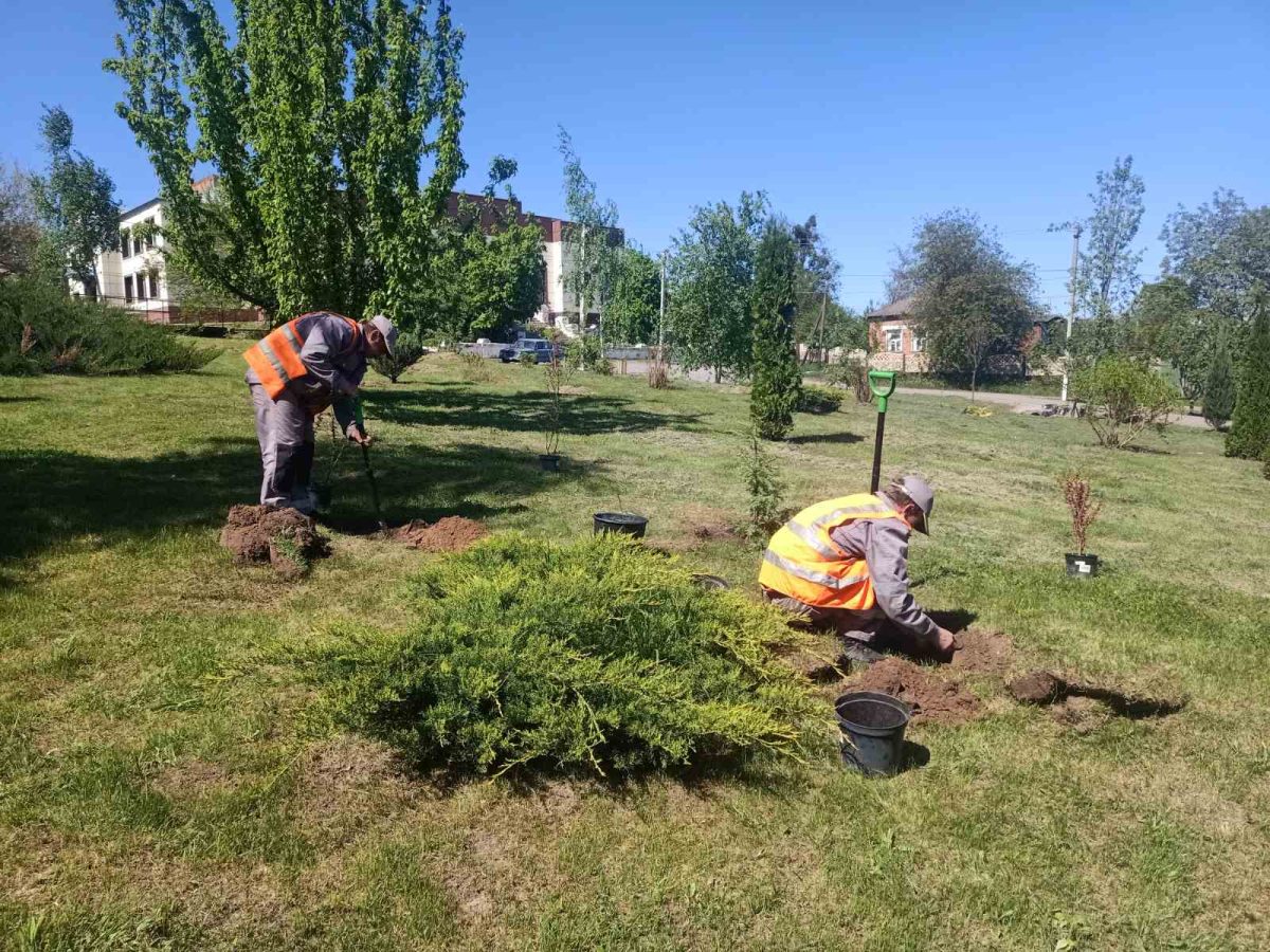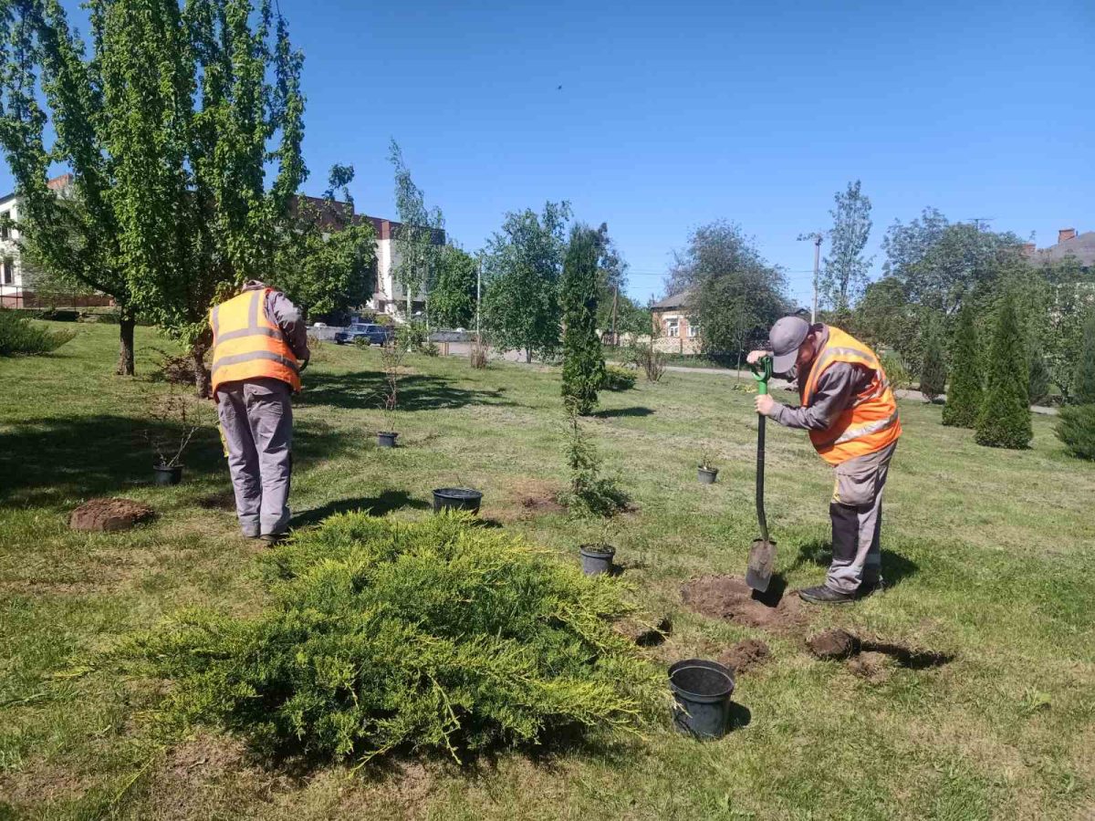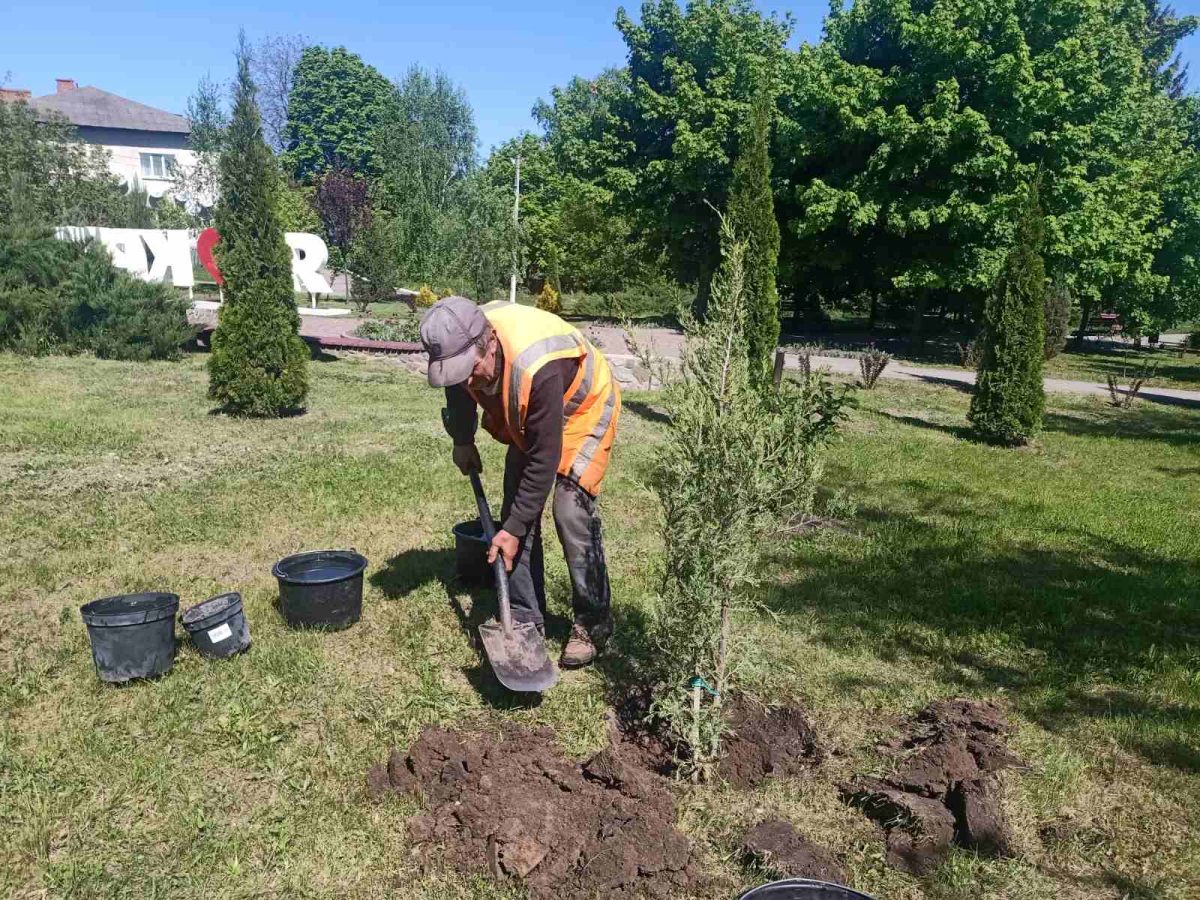 Зелені насадження, серед яких тсуга канадська, ялівець скельний, туя західна Колумна, туя Єллоу Ріббон, яблуня декоративна, барбарис та гортензія, вже прикрасили паркову зону за «Літаком», яка є одним з найулюбленіших місць відпочинку місцевих жителів та гостей громади.