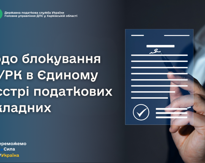 Головне управління ДПС у Харківськійобласті нагадує про алгоритм дій платника податку при блокуванні податковихнакладних/розрахунків коригування в Єдиному реєстрі податкових накладних.