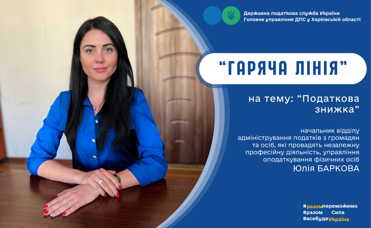 У Головному управлінні ДПС у Харківській області проведено черговий сеанс телефонного зв’язку «гаряча лінія» на тему: «Податкова знижка» за участі начальника відділу адміністрування податків з громадян та осіб, які провадять незалежну професійну діяльність, управління оподаткування фізичних осіб Юлії Баркової.