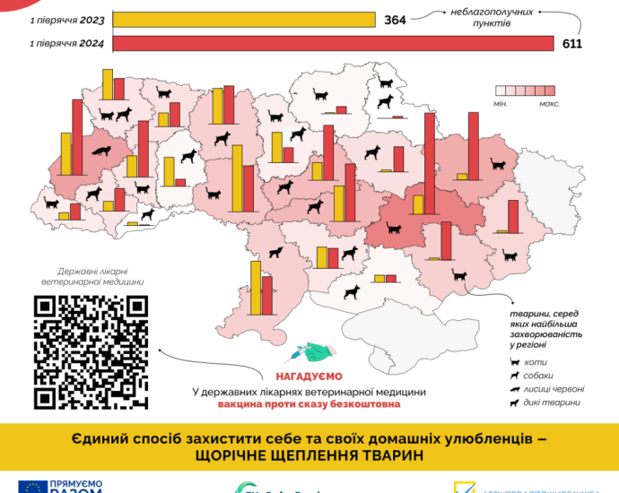 Наголошуємо, що вакцинація домашніх улюбленців проти сказу є безкоштовною та доступною в усіх державних лікарнях ветеринарної медицини Держпродспоживслужби.