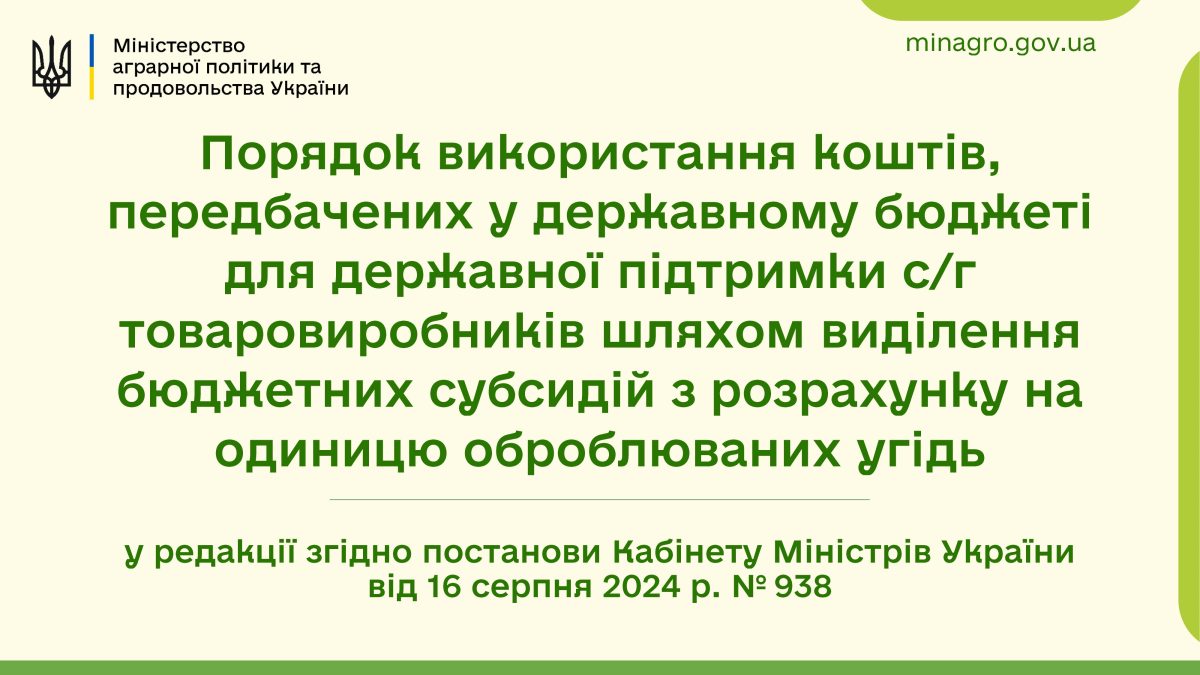 Порядок використання коштів, передбачених у державному бюджеті для державної підтримки с/г товаровиробників