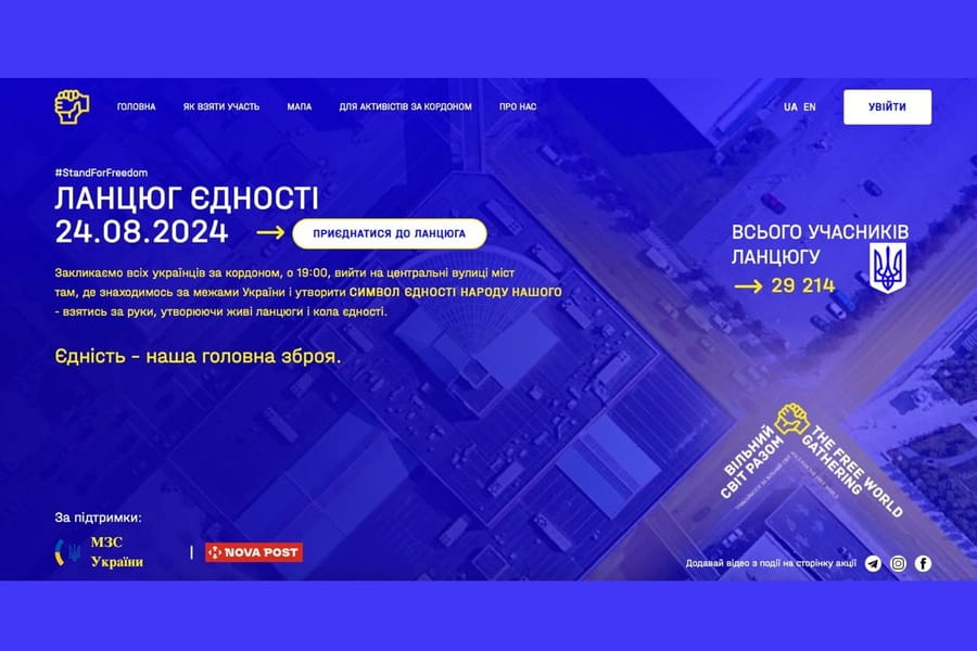 24 серпня, у День Незалежності України, українців за кордоном закликають о 19:00 вийти на центральні вулиці міст і братися за руки, щоб утворити живі «Ланцюги Єдності».