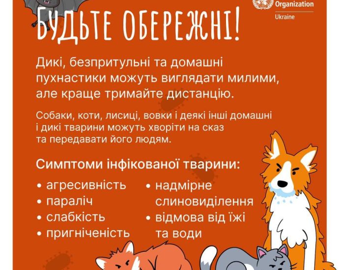 Просимо власників тварин забезпечити належні умови за місцем утримання тварин для проведення щеплення проти сказу. Сказ – це смертельне інфекційне захворювання, з переважним ураженням