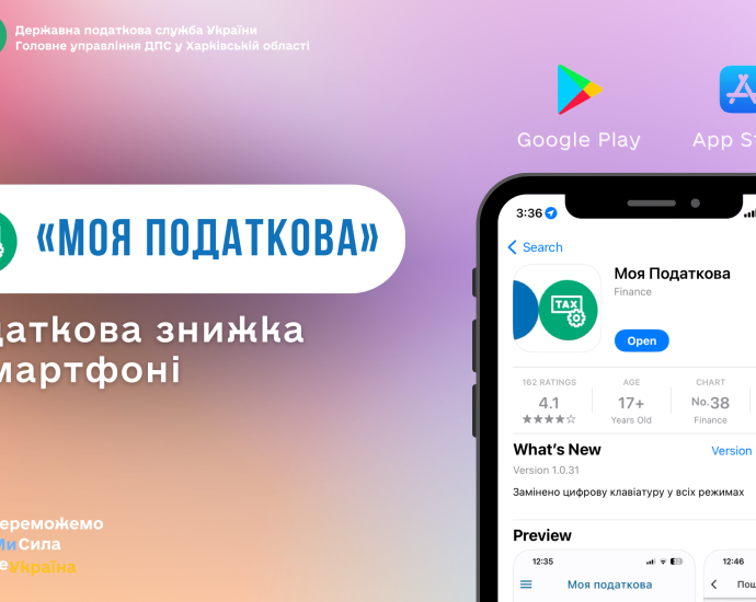 Завантажуйте застосунок «Моя податкова» в AppStore або GooglePlay, ідентифікуйтеся онлайн за допомогою файлового або хмарного КЕП будь-якого надавача та використовуйте більше сервісів.