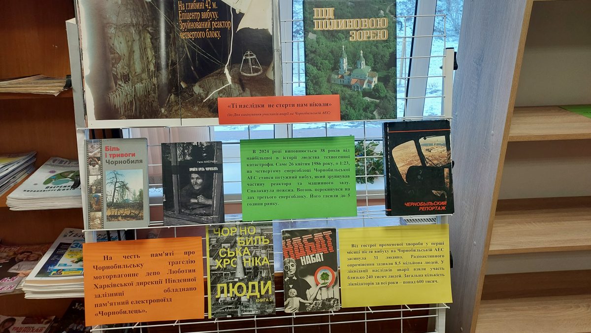 - Тематична полиця «Пам’ятай про Чорнобиль» розкрила основні події, пов’язані з аварією, та нагадувала про її наслідки.