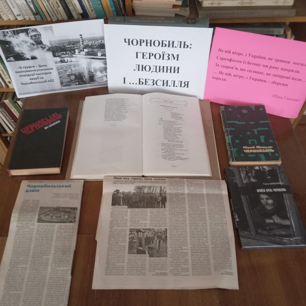 - Тематична полиця «Чорнобиль – незабутній біль» висвітлювала людські долі, які постраждали від аварії.