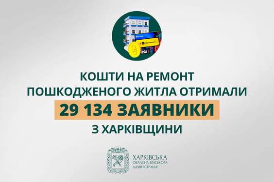 Вже отримали кошти для ремонту житла, пошкодженого внаслідок дій російських окупантів, 29 134 заявників на понад 2,8 мільярда гривень. Ще для 417 жителів Харківщини погоджено та передано на виплату кошти на понад 34 мільйони гривень.