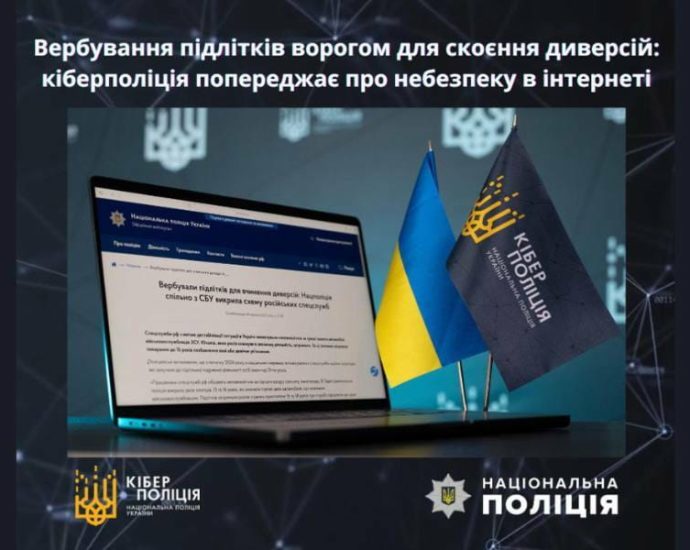 Національна поліція України застерігає про зростання випадків вербування неповнолітніх осіб ворожими спецслужбами через інтернет та соціальні мережі.