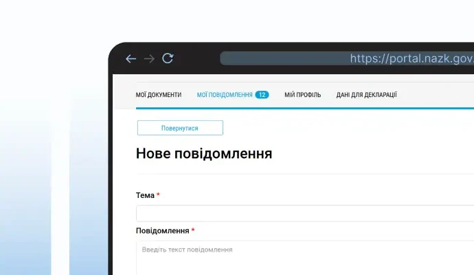- подали декларацію неправильного типу за минулий період – повідомте про це НАЗК через вкладку «Мої повідомлення» в особистому кабінеті Реєстру декларацій.