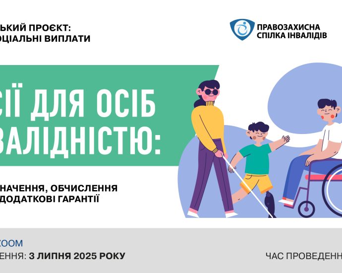 03 липня 2025 року в рамках Просвітницького проєкту «Пенсія та соціальні виплати», проведуть онлайн семінар на тему «Пенсії для осіб з інвалідністю: умови призначення, обчислення розмірів та додаткові гарантії».