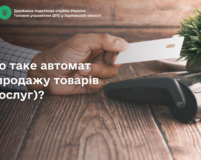 Головне управління ДПС у Харківській області повідомляє, що відповідно до ст. 2 Закону України від 06 липня 1995 року № 265/95-ВР «Про застосування реєстраторів розрахункових операцій у сфері торгівлі, громадського харчування та послуг» із змінами, автомат з продажу товарів (послуг) – реєстратор розрахункових операцій, який в автоматичному режимі здійснює видачу (надання) за готівкові кошти або із застосуванням платіжних карток, жетонів тощо товарів (послуг) і забезпечує відповідний облік їх кількості та вартості, та створює контрольну стрічку в електронному вигляді.
