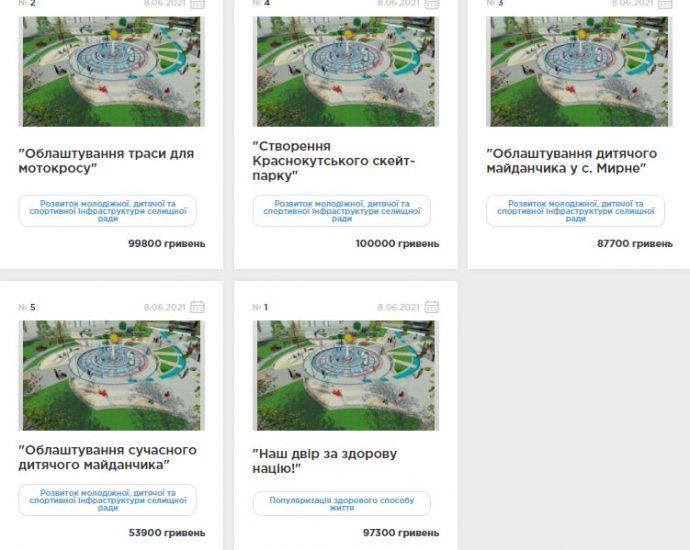 Перед Вами 5 проєктів, поданих на конкурс. Ознайомтеся з кожним та віддайте свій голос за той проєкт, який, на Вашу думку, найбільш цікавий.