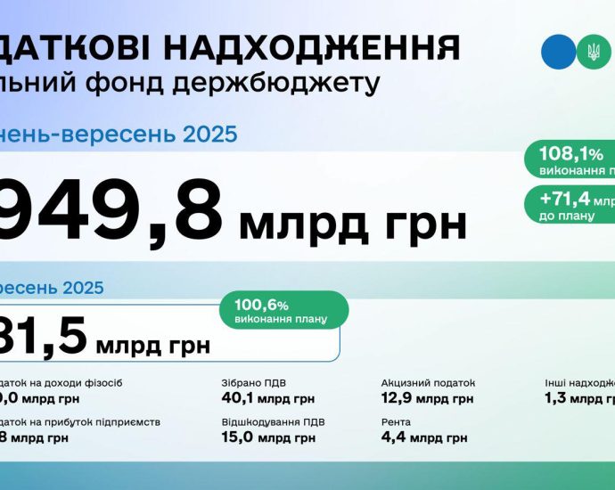План вересня ДПС виконала на 100,6 %. Загалом до бюджету надійшло 81,5 млрд грн. Порівняно із вереснем 2024 року – це більше на 14,8 млрд грн (+22,2 %).