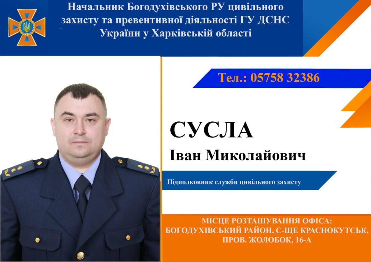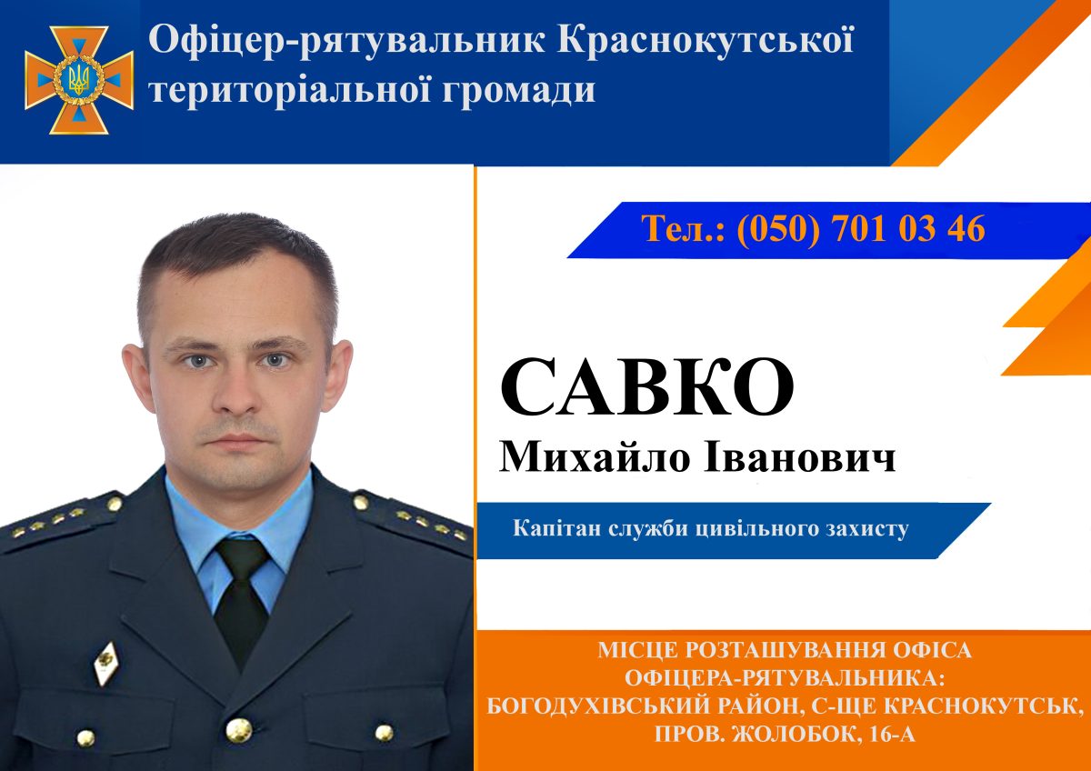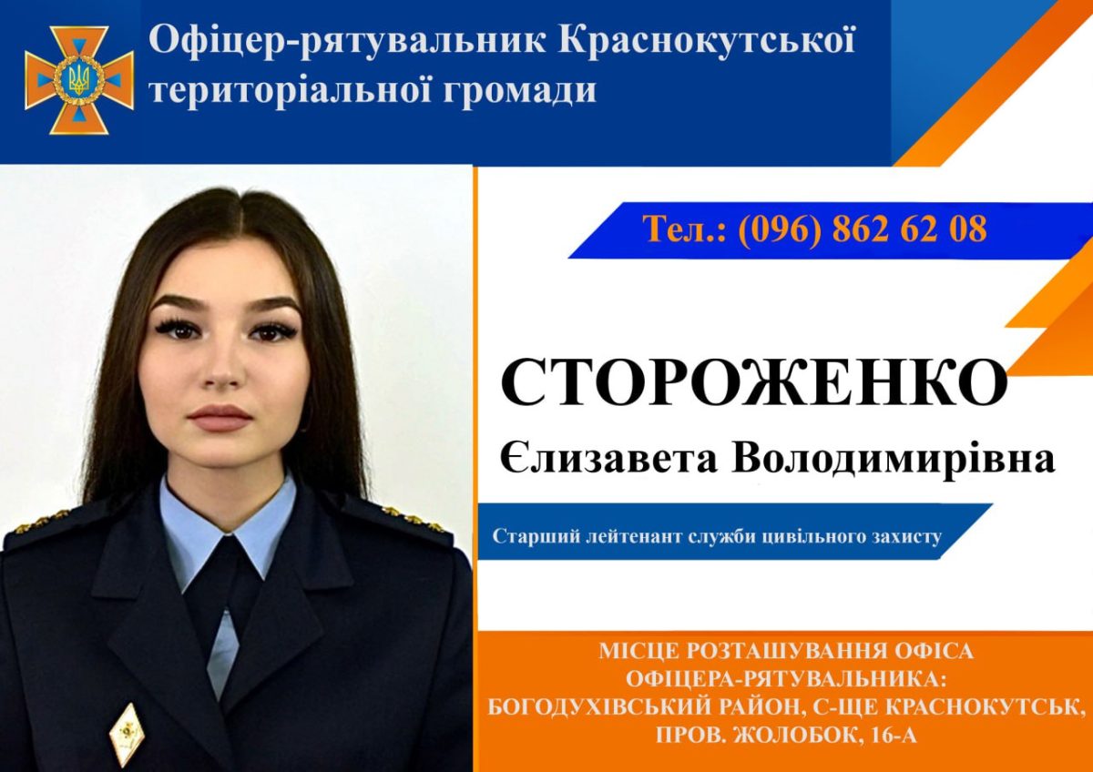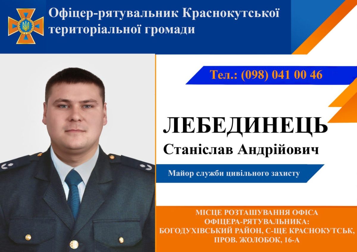 Місце розташування офісу офіцерів-рятувальників: селище Краснокутськ, провулок Жолобок, 16-А