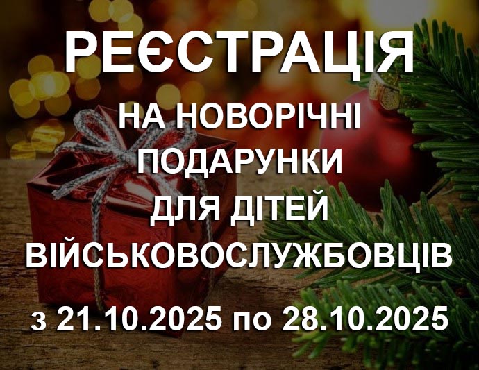 З 21 жовтня по 28 жовтня 2025 року з 09.00 до 16.30 години у приміщенні Краснокутської селищної ради за адресою: селище Краснокутськ, вул. Охтирська, 1, (2 поверх кабінет № 35) буде здійснюватися реєстрація на новорічні подарунки для дітей військовослужбовців, демобілізованих військовослужбовців, безвісти зниклих та родин військовослужбовців, які загинули або знаходяться в полоні, що проживають в селищі Краснокутськ, с. Чернещина, с. Основинці, с. Степанівка, с. Ситники (місцеві та ВПО, від 0 до 16 років включно)
