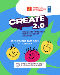 З грудня 2025 по березень 2026 року ПРООН в Україні за підтримки Уряду Данії реалізує інкубатор проєктних волонтерських ініціатив “CREATE 2.0” — програму розвитку для молодих волонтерів і волонтерок, спрямовану на посилення культури цивільного волонтерства в громадах.