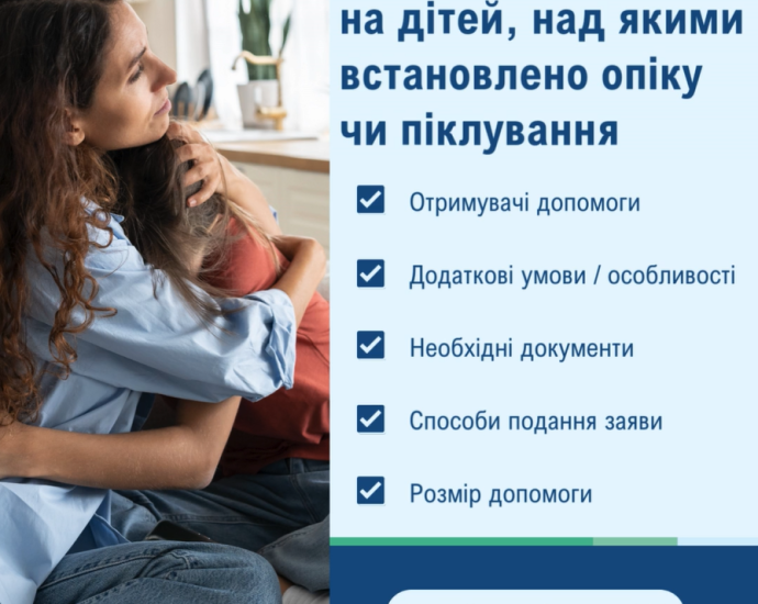 Previous Post: СОЦІАЛЬНА ДОПОМОГА НА УТРИМАННЯ ДИТИНИ В СІМ’Ї ПАТРОНАТНОГО ВИХОВАТЕЛЯ ТА ОПЛАТИ ПОСЛУГИ ПАТРОНАТУ НАД ДИТИНОЮ