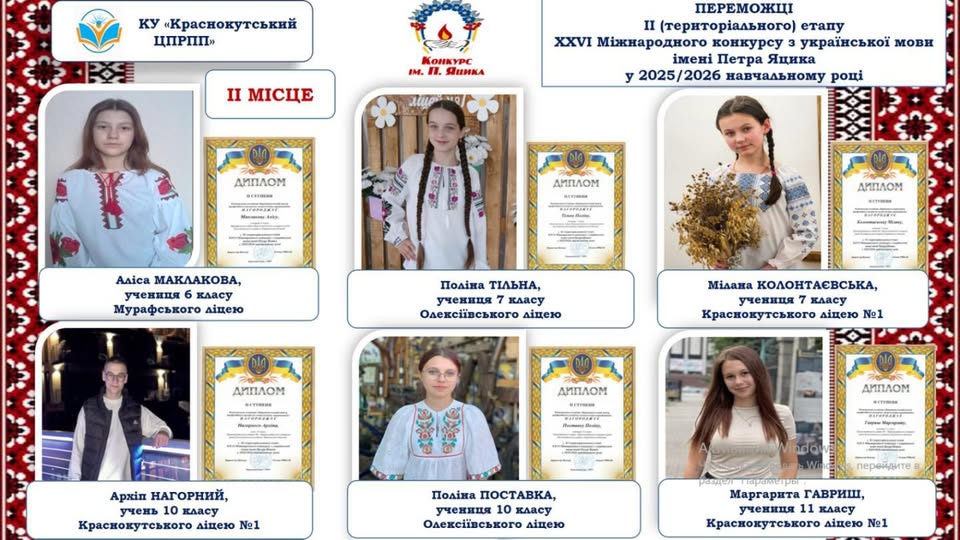 За результатами ІІ (територіального) етапу ХХVI Міжнародного конкурсу з української мови імені Петра Яцика: