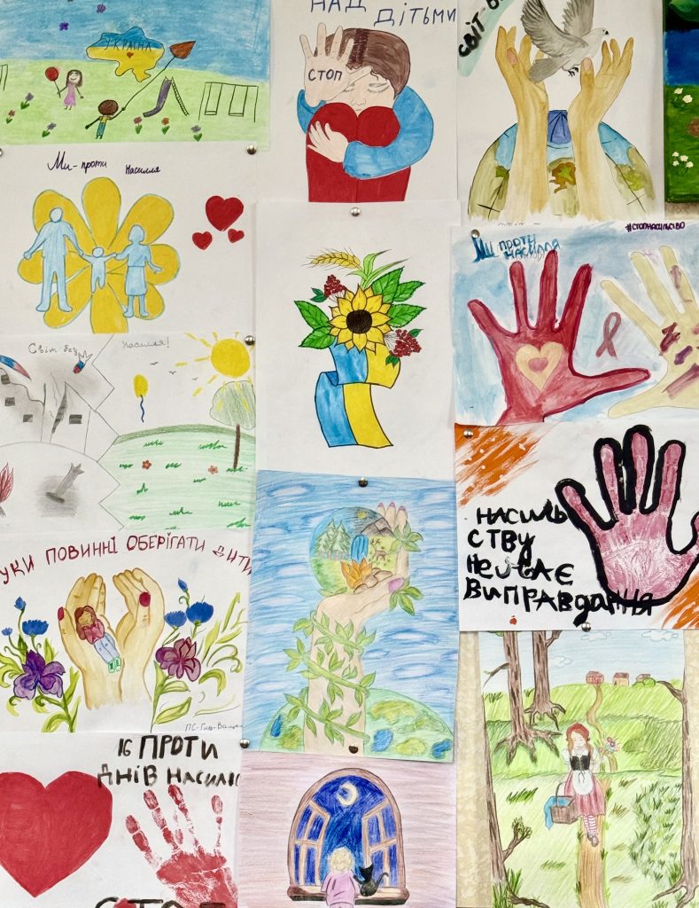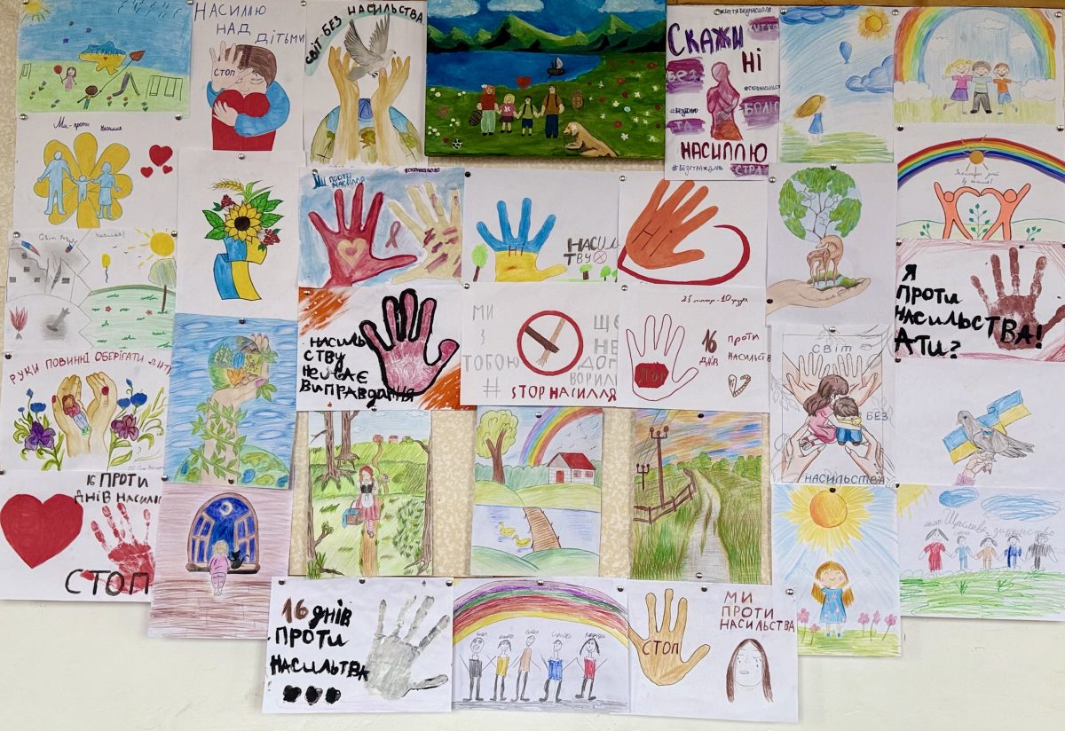 У межах міжнародної акції «16 днів проти насильства», за підтримки Комунального закладу «Центр надання соціальних послуг» Краснокутської селищної ради, прийомні діти та діти-вихованці долучилися до виставки дитячих творчих робіт «Світ без насильства очима дітей».