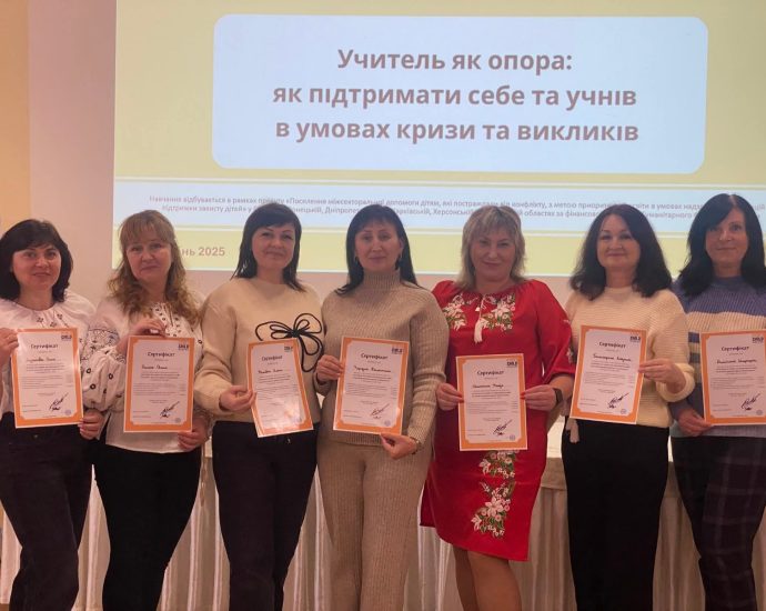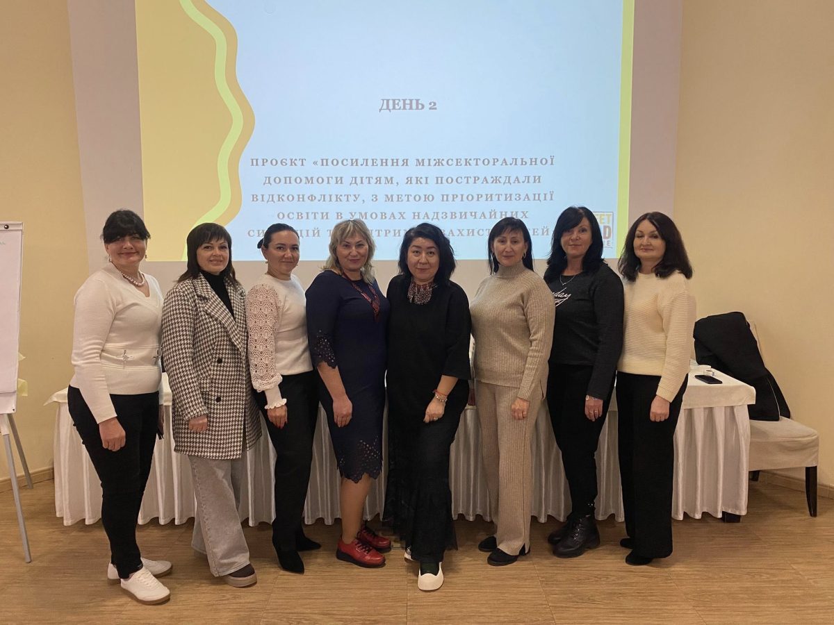 Протягом трьох насичених навчальних днів педагоги займалися з досвідченими менторами, в тому числі з сертифікованим кризовим психологом Соболєвою Ольгою. Під їх координацією учителі розглянули теми «Турбота про себе: вплив війни на вчителя», «Підтримка дітей. Перша психологічна допомога», «Поглиблена підтримка: робота з ризиками, мережа підтримки». Вивчили детально практики, що спрямовані на підтримку емоційного інтелекту (усвідомлення власних емоцій; емпатія, як бачити емоції дітей; саморегуляція), на роботу з ризиками та попередження насильства; на надання першої психологічної допомоги дітям.