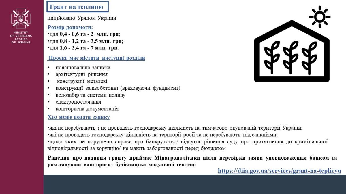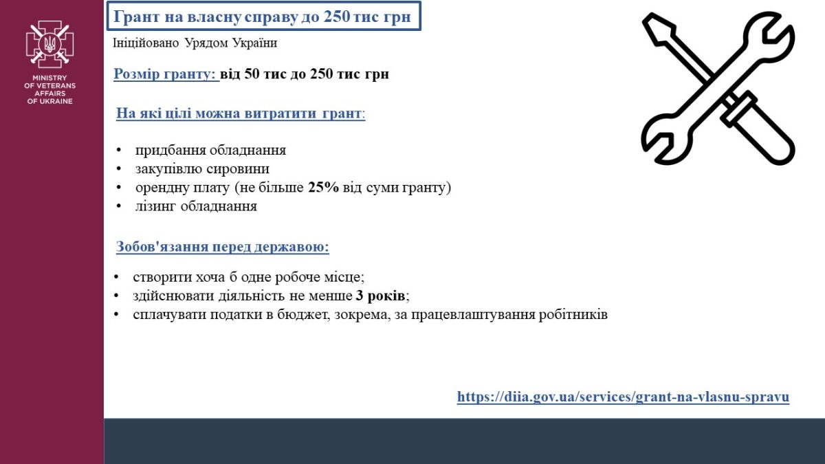 - Грант на власну справу до 250 тис грн https://diia.gov.ua/services/grant-na-vlasnu-spravu