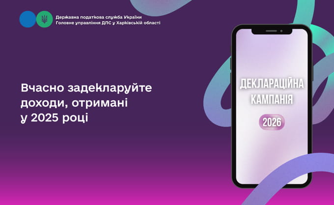 Головне управління ДПС у Харківській області інформує, що триває деклараційна кампанія доходів, отриманих громадянами протягом 2025 року.