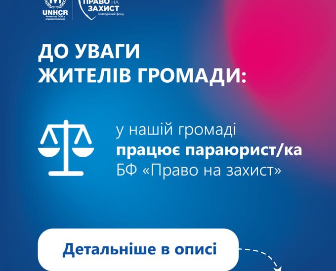 Якщо ви потребуєте допомоги щодо захисту, доступу до державних послуг, юридичної консультації юриста з питань, пов’язаних із воєнним станом в Україні, звертайтеся, будь ласка: