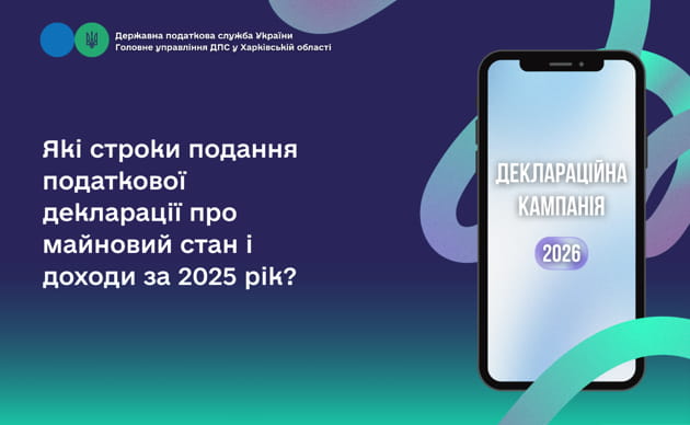 Головне управління ДПС у Харківській області повідомляє, що з 1 січня 2026 року триває кампанія декларування доходів, отриманих громадянами у 2025 році.