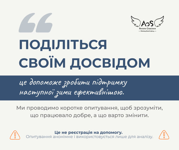 Благодійна організація «БФ «ЯНГОЛИ СПАСІННЯ» проводить онлайн-опитування серед жителів громад за результатами зимового періоду 2025–2026 років.