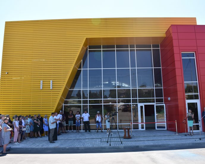 Та основною метою візиту стало урочисте відкриття головного спортивного об’єкту громади – фізкультурно-оздоровчого комплексу у смт Краснокутськ, в якому працюватимуть секції з футзалу, баскетболу, волейболу, великого тенісу, гімнастики та інші.